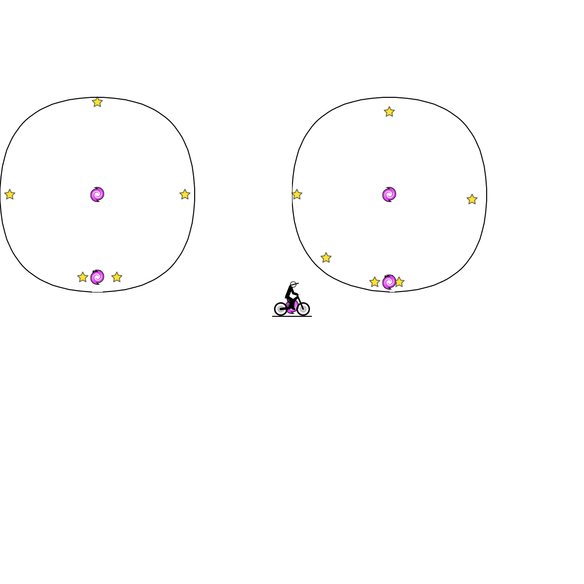 two circles with stars and stops