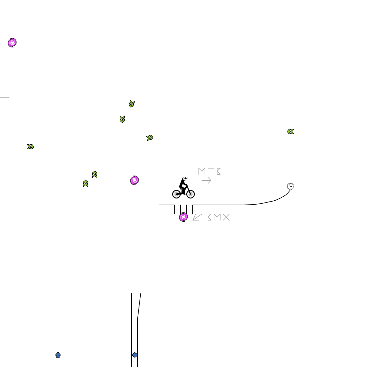 There's two ways you can go, if you decide to go with the Mountain bike, you can do jumps and other regular track things, if you choose the BMX, you'll see a don't move level that incorporates gravity.